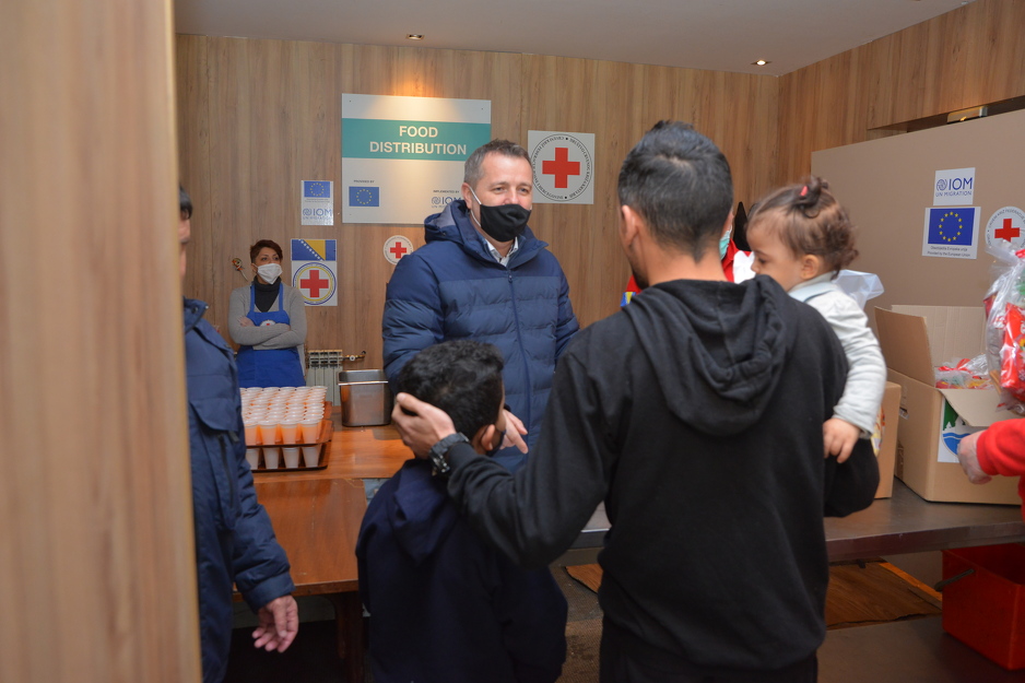 “We saw that the camp is well organized and that there are a lot of activities for children and parents and we are happy that everything is well-organized. I would like to point out that this is the first camp for migrants that has been opened in Bosnia and Herzegovina and that we, as a local community, have given our contribution and support for taking care of the most vulnerable categories of the migrant population. This is manifested through projects that are currently being implemented, such as improvement of the water supply network in this area, but also organizing school activities for children in cooperation with the elementary school Ostrožac. We are sensitive to human suffering. We understand very well the problems of these people and all we ask from our country is to be well-organized. The solution to this crisis is not to transfer all the burden only to the Una-Sana Canton, because we cannot bear that burden,” said Mayor Ogrešević.
